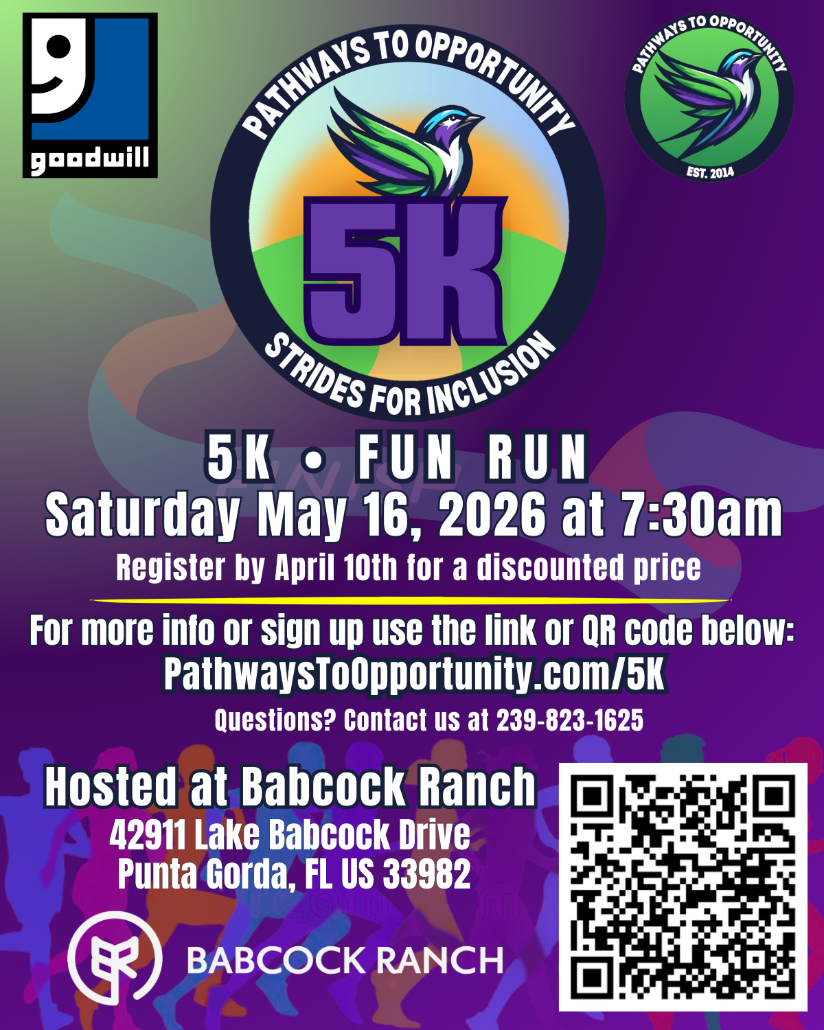 Strides for Inclusion 5K Run-Walk-Roll presented by Babcock Ranch Join us Saturday May 16th at 7:30 am for our annual 5K run-walk-roll! Strides for Inclusion 5K Run-Walk-Roll presented by Pathways...