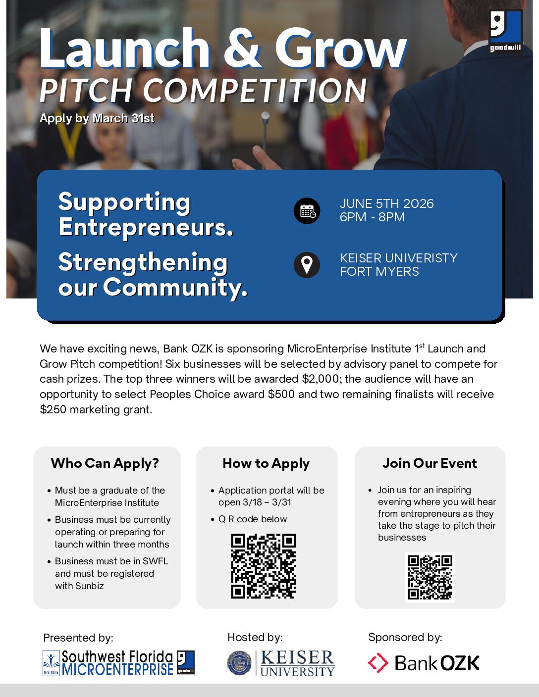 Welcome to our first annual Launch & Grow Pitch Competition! We have exciting news, Bank OZK is sponsoring MicroEnterprise Institute 1 Launch and Grow Pitch competition! Six businesses will be...