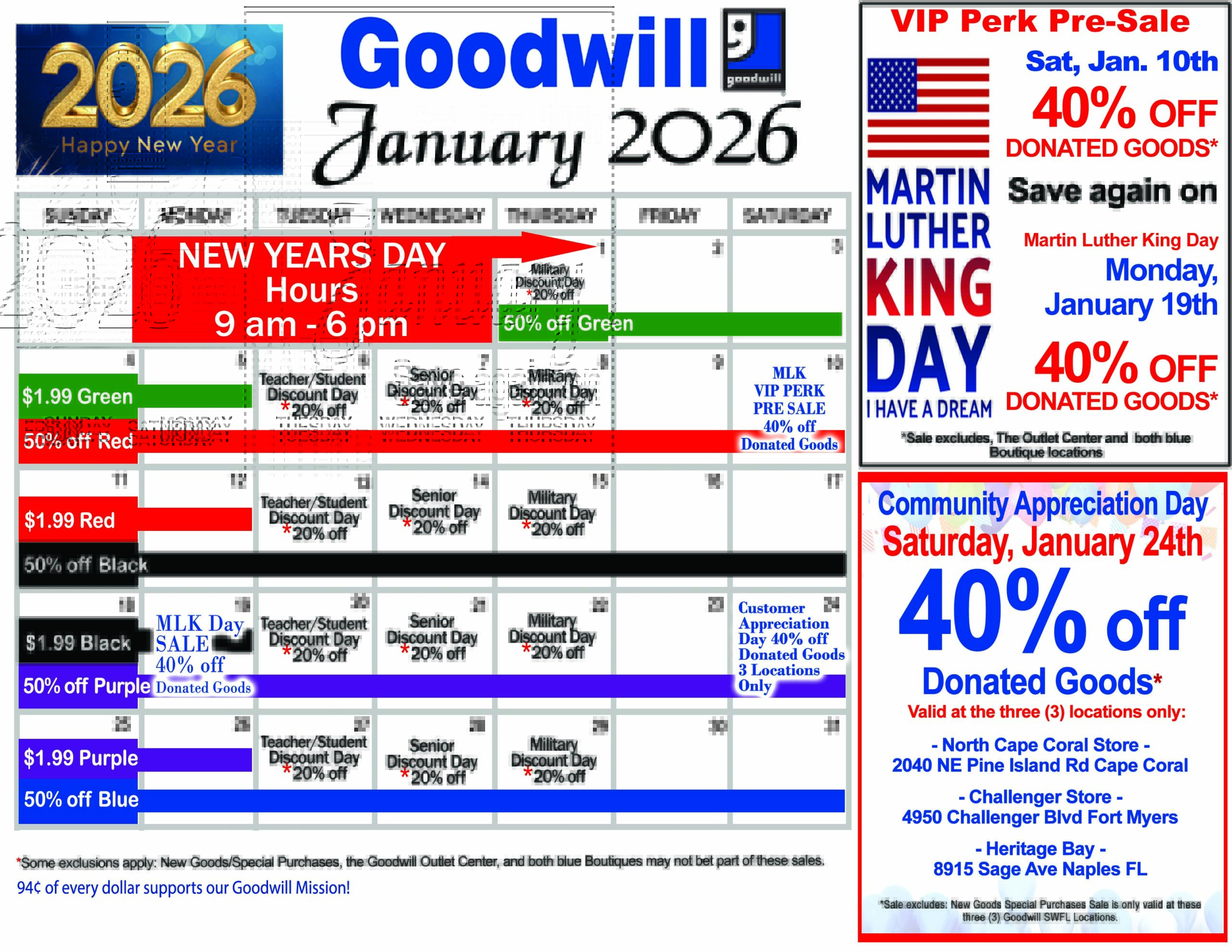 Donate, Shop, Change A Life! Visit one of our many stores in southwest Florida or shop online at ShopGoodwill.com. Signup for Our VIP Perks to receive special promotions.
